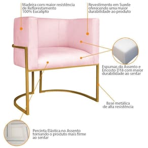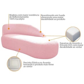 Kit Divã Luna 160cm Lado Direito E 02 Poltronas Base De Ferro Dourado Suede Cor Rosa Bebê