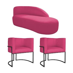 Kit Divã Luna 160cm Lado Direito E 02 Poltronas Base De Ferro Preto Suede Cor Pink