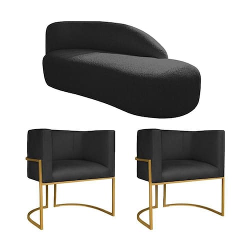 Kit Divã Luna e 02 Poltronas Base de Ferro