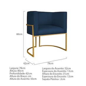 Kit Divã Luna 185cm Lado Esquerdo E 01 Poltrona Base De Ferro Dourado Suede Cor Azul Marinho