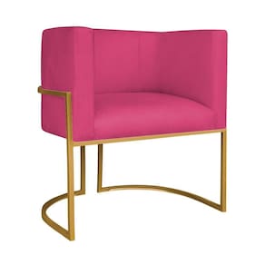 Kit Divã Luna 185cm Lado Esquerdo E 02 Poltronas Base De Ferro Dourado Suede Cor Pink