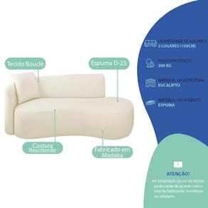 Estrutura: Madeira de Eucalipto Reflorestada e MDF. Estofamento: Espuma D-23. Revestimento: Bouclé.Vendido e entregue por WebContinental