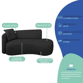 Estrutura em Madeira de Eucalipto Reflorestada e MDF, estofamento em espuma D-23, revestimento em Linho Preto.Vendido e entregue por WebContinental
