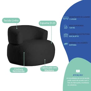 Madeira de Eucalipto Reflorestada, MDF, Espuma D-23, Linho PretoVendido e entregue por WebContinental