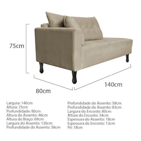 Especificações Técnicas do Kit Recamier Azura 140cm Lado Direito e 02 Poltronas Classic: