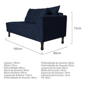 Especificações Técnicas do Kit Recamier Azura 140cm Lado Esquerdo e 02 Poltronas Classic: