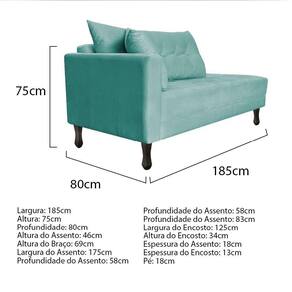 Especificações Técnicas do Kit Recamier Azura 185cm Lado Direito e 02 Poltronas Classic: