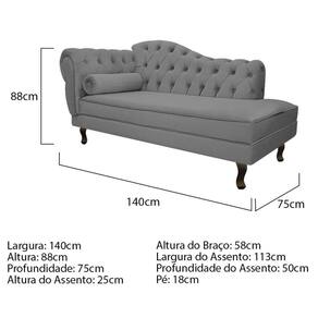 Especificações Técnicas do Kit Recamier Diana 140cm Lado Direito e 02 Poltronas Julia: