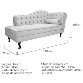 Especificações Técnicas do Kit Recamier Diana 140cm Lado Esquerdo e 02 Poltronas Julia: