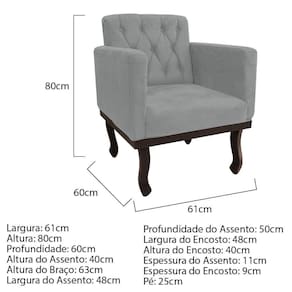 Especificações Técnicas do Kit Recamier Diana 185cm Lado Esquerdo e 01 Poltrona Classic: