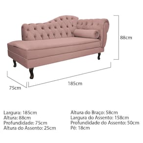 Especificações Técnicas do Kit Recamier Diana 185cm Lado Esquerdo e 02 Poltronas Classic: