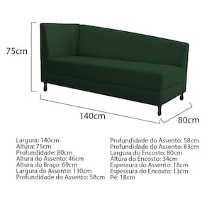 Especificações Técnicas do Kit Recamier Heitor 140cm Lado Direito e 02 Poltronas Luiza: