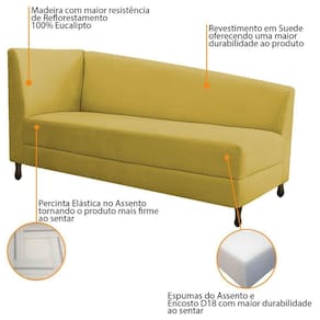 Kit Diva Recamier Heitor 160cm Lado Direito E 02 Poltronas Luiza Suede - Doce Sonho Móveis Cor Amarelo