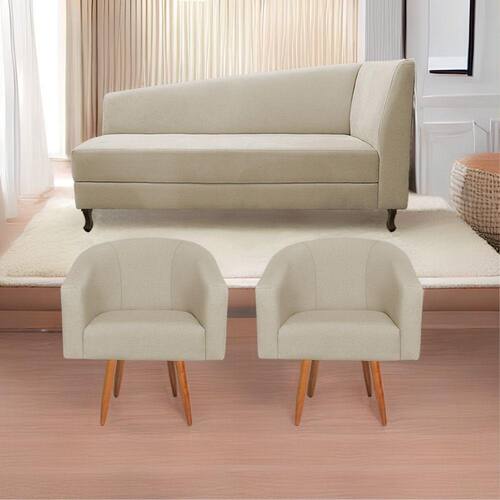Kit Diva Recamier Heitor 185cm Lado Esquerdo E 02 Poltronas Luiza Suede - Doce Sonho Móveis Cor Bege
