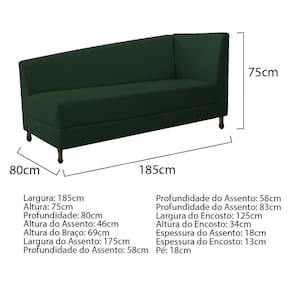 Especificações Técnicas do Kit Recamier Heitor 185cm Lado Esquerdo e 02 Poltronas Luiza:
