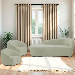 Kit Divã Recamier Orgânico França 160cm Lado Esquerdo E 2 Poltronas Amore Bouclé Verde Oliva