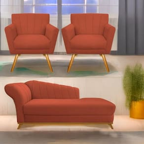 Kit Diva Recamier Vanessa 140cm Lado Direito E 02 Poltronas Laura Suede - Doce Sonho Móveis Cor Terracota