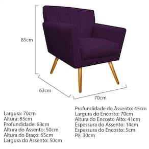 Kit Diva Recamier Vanessa 160Cm Lado Direito E 02 Poltronas Laura Suede Cor Roxo - Blush