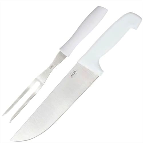 Não basta ter uma boa carne, também é preciso ter uma boa faca. O Kit do Assador da Mor vem com uma faca e um garfo produzidos em aço inoxidável, que confere durabilidade e resistência à lâmina, e cabos brancos em polipropileno que facilitam a higiene e dão firmeza durante o manuseio. Itens que não podem faltar em qualquer churrasco de domingo e são uma ótima opção de presente em qualquer ocasião!
