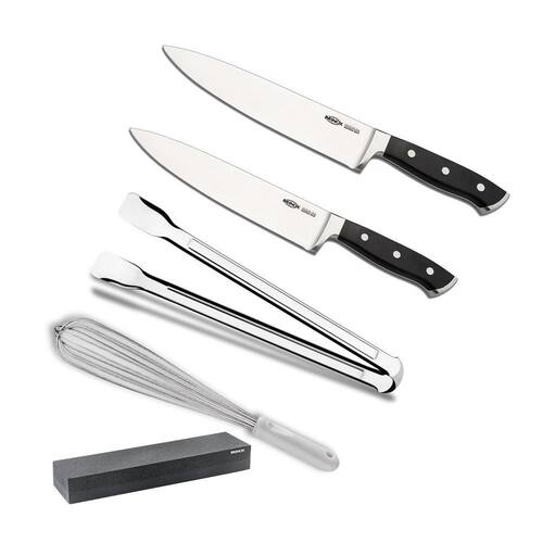 Os utensílios Brinox foram desenvolvidos com a forma perfeita para servir e cortar os alimentos e tornar o trabalho diário mais rápido e prático. Este kit do chef com 5 peças é ideal para você que precisa equipar a sua cozinha com acessórios de qualidade para auxiliar nos preparos e ao servir as refeições. É indicado para uso residenciais ou comerciais, já que possui excelente custo benefício e resistência. As facas do kit utensílios possuem lâminas em aço inoxidável temperadas, proporcionando maior durabilidade ao fio. Além disso, as espigas da lâmina são injetadas com ABS, material de excelente resistência, garantindo mais estabilidade ao cortar os alimentos.