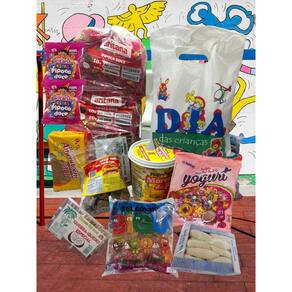 Kit ideal para o dia de Cosme e Damião São 8 tipos diferentes de doces. Acompanha saco e fecho para embalar.