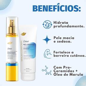 Com a tecnologia Pró-Ceramidas, este kit é a escolha perfeita para restaurar a vitalidade da pele, promovendo uma sensação de suavidade e um brilho saudável. Prepare-se para uma pele visivelmente mais saudável e radiante com o cuidado especializado da DOVE.