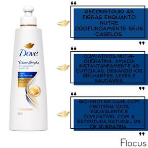 creme de pentear Dove ajuda a reconstruir as fibras enquanto nutre profundamente seus cabelos.