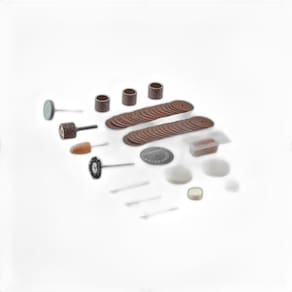 Os itens que acompanham esse kit são: - 01 Cortador de alta velocidade 194 - 01 Pedra de amolar de óxido de alumínio 952 - 01 Rebolo de carboneto de silício 85422 - 01 Escova de cerdas de náilon 403 - 02 Rodas de polimento de feltro 414 1/4 pol. - 01 Composto de polimento 421 - 02 Rodas de polimento de feltro 429 1/2 pol. - 36 Discos de corte 409 - 01 Disco de corte reforçado 426 - 01 Tambor de lixa 407 - 01 Cinta de lixa 408 60 Grit - 01 Cinta de lixa 432 Grão 120 - 01 Mandril 401 - 01 Mandril 402