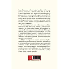 O oitavo volume da série O que restou do Imbecil Coletivo, de Olavo de Carvalho, chega em uma edição especial. Em Droga é cultura, o autor aborda a influência da ideologia, da mídia e da cultura pop na formação de uma mentalidade coletiva anestesiada um retrato contundente das deformações culturais que marcam o Brasil contemporâneo. Este kit exclusivo acompanha, além do livro, dois itens de coleção: Card colecionador; Marca-páginas especial. Uma oportunidade única de adquirir mais uma peça fundamental do legado de Olavo de Carvalho, em edição pensada para leitores e colecionadores.