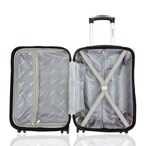 Características - Mala de bordo (pequena) rígida em fibra ABS (19"); Leve sua mala com você na cabine do avião. Medidas conforme as limitações de bagagem de mão para a maioria das companhias aéreas. - Mala com cadeado de segredo (senha) embutido; - Forração interna acolchoada; - Alça flexível superior para maior conforto e comodidade; - Bolso interno com zíper; - Rodas giratórias duplas em 360º; - Carrinho retrátil com pintura eletrostática e botão liberador com dois níveis de ajustes.