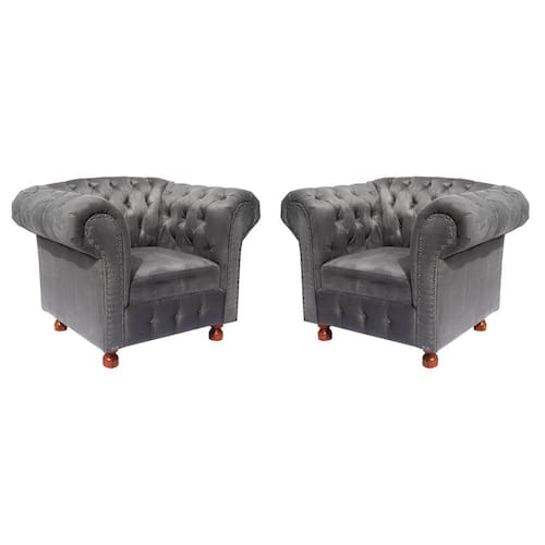 KIT DUAS Poltronas Chesterfield Luiz XV Capitone SUEDE CINZA