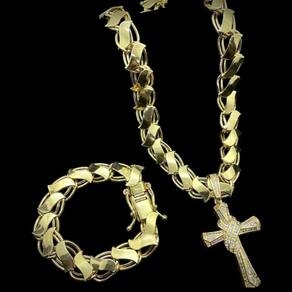 Kit Dubai S 13Mm + Cruz Maciço Cravejada Banhado A Ouro