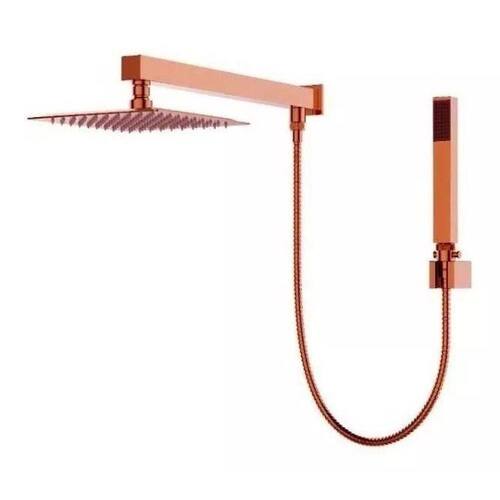 Produtos que compõe o kit: - 01 crivo quadrado 20 x20 cm. - 01 braço redondo com desviador. - 01 engate flexível para ducha de mão com 1,80 metros. - 01 ducha de mão. - 01 suporte para ducha de mão. - 01 válvula acionadora fluxo de água da ducha de mão.