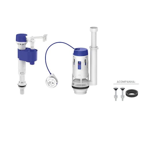 Kit economia para instalação de caixa acoplada universal censi dual flush ref: 9562.Entrada master flux:Universal, indicado para todos os modelos de caixas acopladas,Rosca de entrada: 1/2,Ideal para pressão de rede entre 1 m.c.a. a 100 m.c.a.,Sistema telescópico para regulagem de altura: de 160 mm a 275 mm,Saída dual flush.Sistema dual flush: descarga com acionamento parcial e total,Acionador de abs cromado com instalação universal lateral, frontal e superior ,Acompanha vedante e conjunto de fixação.Rosca de saída: 2 60 mm ,Extravasor com altura ajustável ladrão : de 210 mm a 330 mm,Vedante de silicone.