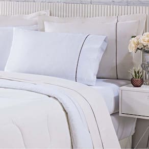 Kit Edredom 100% Algodão Percal 150 Fios Dupla Face King + Jogo De Cama Gran Moratta 7 Peças - Branco/ Palha O Edredom Gran Moratta é confeccionado com tecido Percal 100% Algodão, é dupla face, ou seja, pode ser dos dois lados, sendo um com detalhe em . O jogo de cama possui tecido Percal 100% Algodão, acompanha lençol de baixo, lençol de cima e fronhas. A combinação perfeita para suas noites de sono! Produto composto por: 01 Edredom 2,40m x 2,90m 02 Porta Travesseiro 70cm x 50cm 01 Lençol de Cima 2,40m x 2,90m 01 Lençol de Baixo para Colchão 1,93m x 2,03m x 0,40m 02 Fronhas 70cm x 50cm Composição: Percal 150 Fios 100% Algodão Enchimento 100% Poliéster (120 Gramas) Marca: Enxovais Davy | Estampa: Não se Aplica | Medidas: 01 Edredom 2,40m x 2,90m02 Porta Travesseiro 70cm x 50cm01 Lençol de Cima 2,40m x 2,90m 01 Lençol de Baixo para Colchão 1,93m x 2,03m x 0,40m02 Fronhas 70cm x 50cm | de Peças: 07 Peças | Material: Agodão | Cor Predominante: Branco/ Palha | Cama Indicada: King