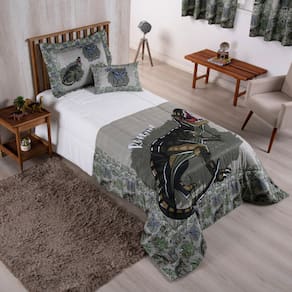 QUANTIDADE DE PEÇAS E MEDIDAS APROXIMADAS (COMPRIMENTO X LARGURA): 01 Edredom Estampado Juvenil Menino: 2,50m x 1,90m; 01 Porta Travesseiro Estampado com Aba: 70cm x 50cm (medida útil); 01 Capa para Almofada Estampada: 55cm x 35cm; 01 Refil Enchimento de Almofada: 60cm x 40cm.