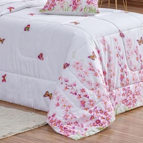 O Kit Edredom é produzido em Percal 200 Fios 100% Algodão, proporcionando um toque macio e aconchegante. Sua estampa floral com borboletas adiciona um charme delicado e elegante ao ambiente, criando uma atmosfera romântica e sofisticada.