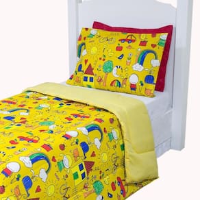 O Kit Edredom Infantil Pop Solteiro Arco-Íris vem com duas peças, um edredom tamanho solteiro e uma fronha. A coleção Pop é a escolha perfeita para quem deseja um quarto moderno e colorido. O Edredom Arco-Íris é um item versátil e dupla face que pode ser usado tanto como peça decorativa quanto para o conforto nas noites mais frias.