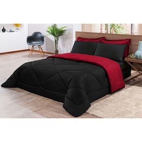 Kit Edredom + Jogo De Lençol Aconchego Look House Dupla Face Casal King 06 Peças - Preto E Vermelho O Kit Look House, traz para seu ambiente um conjunto de roupas de cama com todas as peças que você precisa para deixar seu ambiente aconchegante, sem contar o conforto para as noites de sono. Produto composto por:01 Edredom 2,80m x 2,50m01 Lençol de baixo c/ elástico para colchão de 1,98m x 2,03m x 0,30cm02 Porta travesseiros 70cm x 50cm02 Fronhas de 70cm x 50cm Composição tecido: 80% Algodão / 20% Poliéster Ean: 7908618406098