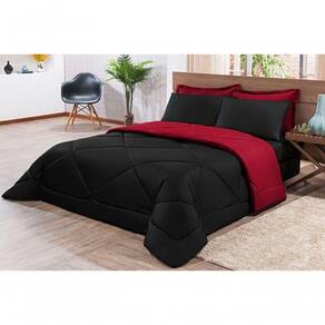 Kit Edredom + Jogo De Lençol Aconchego Look House Dupla Face Casal King 06 Peças - Preto E Vermelho O Kit Look House, traz para seu ambiente um conjunto de roupas de cama com todas as peças que você precisa para deixar seu ambiente aconchegante, sem contar o conforto para as noites de sono. Produto composto por:01 Edredom 2,80m x 2,50m01 Lençol de baixo c/ elástico para colchão de 1,98m x 2,03m x 0,30cm02 Porta travesseiros 70cm x 50cm02 Fronhas de 70cm x 50cm Composição tecido: 80% Algodão / 20% Poliéster