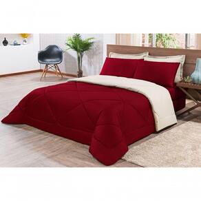 Kit Edredom + Jogo De Lençol Aconchego Look House Dupla Face Casal King 06 Peças - Vermelho E Palha O Kit Look House, traz para seu ambiente um conjunto de roupas de cama com todas as peças que você precisa para deixar seu ambiente aconchegante, sem contar o conforto para as noites de sono. Produto composto por:01 Edredom 2,80m x 2,50m01 Lençol de baixo c/ elástico para colchão de 1,98m x 2,03m x 0,30cm02 Porta travesseiros 70cm x 50cm02 Fronhas de 70cm x 50cm Composição tecido: 80% Algodão / 20% Poliéster Ean: 7908618406142