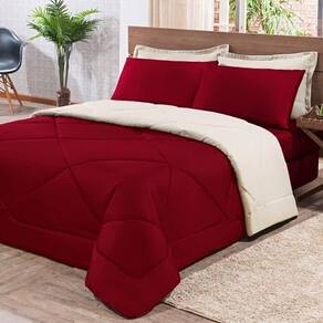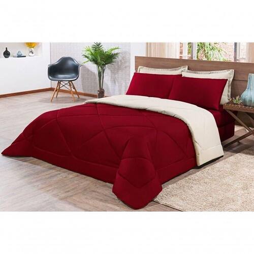 Kit Edredom + Jogo De Lençol Aconchego Look House Dupla Face Casal King 06 Peças - Vermelho E Palha O Kit Look House, traz para seu ambiente um conjunto de roupas de cama com todas as peças que você precisa para deixar seu ambiente aconchegante, sem contar o conforto para as noites de sono. Produto composto por:01 Edredom 2,80m x 2,50m01 Lençol de baixo c/ elástico para colchão de 1,98m x 2,03m x 0,30cm02 Porta travesseiros 70cm x 50cm02 Fronhas de 70cm x 50cm Composição tecido: 80% Algodão / 20% Poliéster