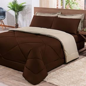 Kit Edredom + Jogo De Lençol Aconchego Look House Dupla Face Casal Queen 06 Peças - Marrom E Caqui O Kit Look House, traz para seu ambiente um conjunto de roupas de cama com todas as peças que você precisa para deixar seu ambiente aconchegante, sem contar o conforto para as noites de sono. Produto composto por: 01 Edredom 2,50m x 2,20m 01 Lençol de baixo c/ elástico para colchão de 1,58m x 1,98m x 0,30cm 02 Porta travesseiros 70cm x 50cm 02 Fronhas de 70cm x 50cm Composição tecido: 80% Algodão / 20% Poliéster Marca: Enxovais Davy | Estampa: Não se Aplica | Medidas: 01 Edredom 2,50m x 2,20m01 Lençol de baixo c/ elástico para colchão de 1,58m x 1,98m x 0,30cm02 Porta travesseiros 70cm x 50cm02 Fronhas de 70cm x 50cm | Número de Peças: 06 Peças | Material: Poliéster | Cor Predominante: Marrom E Caqui | Cama Indicada: Queen