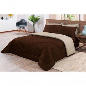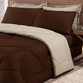 Kit Edredom + Jogo De Lençol Aconchego Look House Dupla Face Casal Queen 06 Peças - Marrom E Caqui O Kit Look House, traz para seu ambiente um conjunto de roupas de cama com todas as peças que você precisa para deixar seu ambiente aconchegante, sem contar o conforto para as noites de sono. Produto composto por:01 Edredom 2,50m x 2,20m01 Lençol de baixo c/ elástico para colchão de 1,58m x 1,98m x 0,30cm02 Porta travesseiros 70cm x 50cm02 Fronhas de 70cm x 50cm Composição tecido: 80% Algodão / 20% Poliéster Ean: 7908618405961