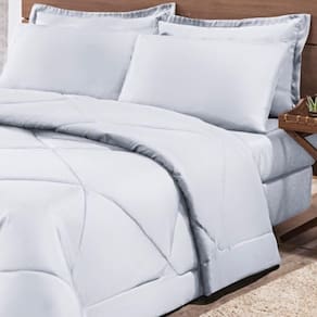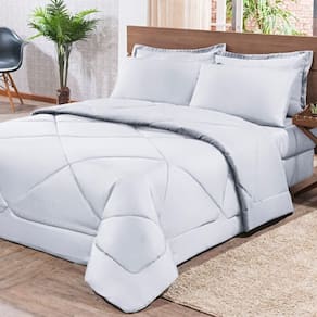 Kit Edredom + Jogo De Lençol Aconchego Look House Dupla Face Solteiro 04 Peças - Branco O Kit Look House, traz para seu ambiente um conjunto de roupas de cama com todas as peças que você precisa para deixar seu ambiente aconchegante, sem contar o conforto para as noites de sono. Produto composto por:01 Edredom 2,40m x 1,60m01 Lençol de baixo c/ elástico para colchão de 1,88m x 88cm x 0,30cm01 Porta travesseiros 70cm x 50cm01 Fronhas de 70cm x 50cm Composição tecido: 80% Algodão / 20% Poliéster
