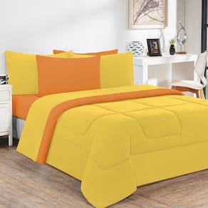 Kit Edredom + Jogo De Lençol Malha 100% Algodão Gran Moratta 4 Peças Solteiro - Amarelo-laranja - Única