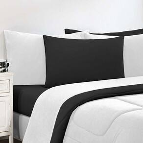 Kit Edredom + Jogo De Lençol Malha 100% Algodão Gran Moratta 4 Peças Solteiro - Branco/preto