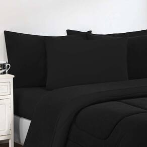 Kit Edredom + Jogo De Lençol Malha 100% Algodão Gran Moratta 4 Peças Solteiro - Preto-preto - Única