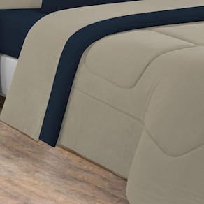 Marca: Enxovais Davy | Estampa: Não se Aplica | Medidas: 01 Edredom Solteiro Dupla Face Liso 1,60m x 2,40m01 Porta Travesseiro 70cm x 50cm01 Lençol de Cima 1,60m x 2,40m 01 Lençol de Baixo para Colchão 0,88m x 1,88m x 0,30m (Elástico em toda a volta)01 Fronha 70cm x 50cm | Número de Peças: 05 Peças | Material: Agodão | Cor Predominante: Avelã/Azul Marinho | Cama Indicada: Solteiro