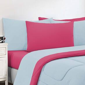 Marca: Enxovais Davy | Estampa: Não se Aplica | Medidas: 01 Edredom Solteiro Dupla Face Liso 1,60m x 2,40m01 Porta Travesseiro 70cm x 50cm01 Lençol de Cima 1,60m x 2,40m 01 Lençol de Baixo para Colchão 0,88m x 1,88m x 0,30m (Elástico em toda a volta)01 Fronha 70cm x 50cm | Número de Peças: 05 Peças | Material: Agodão | Cor Predominante: Azul Bebê/Pink | Cama Indicada: Solteiro